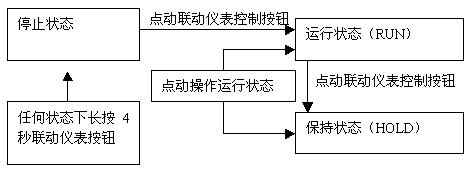 仪表单动操作用于控制1个区的1台仪表运行,联动操作用于控制1~5区的所有仪表运行。仪表运行的3种状态无论在单动或联动操作下,均可通过点动按住联动温控仪表按钮进行转换,转换见图1: