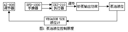 DFD-1000型电动操作器是采用“开关操作制”的原理进行手/自动的切换和操作的,当切换开关处于手动位置时,①、②输入端分别与⑾、⑿输出端开路,由操作开关控制⑾、⑿端是否得电,并根据位置反馈信号的大小来控制通电时间的长短;当切换开关处于自动位置时,①与⑾相通,②与⑿相通。而由AI-808调节器来控制执行机构ZJK-210,从而达到AI-808调节器根据液位变化来控制ZKJ-210角行程,调节砂泵输出功率,稳定泵池液位。