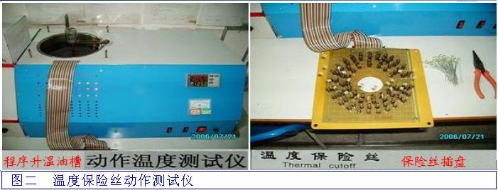 在加热油锅内放置40个温度开关,锅内的温度从50℃向300℃不断升温1℃/分钟,当温度开关断开时记录每个断点的温度。在软件输入产品型号、批号可查询记录,程序控温结束及时计算区分出产品的合格与不合格品。