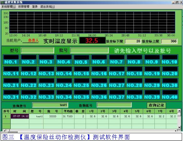 在传统的温度保险丝抽样监测数据记录多是采用人工记录,在温度达到温度保险上限时断开温度保险丝电路,在实际应用中起到保护电器设备的安全使用。由于采用了手工检验操作,大量的数据繁重的劳动量,,在手工记录数据的误差大,大量的数据缺乏准确性,实时数据所产生的延误性无法估计,数据库难以自动建立,无法进行数据传递,及查询。为满足产品质量检验的要求开发出【温度保险丝动作检测仪】连接电脑用计算机软件来记录数据瞬间断点的温度,保证数据的准确性,实现数据库自动生成方便查询。为此我们专门开发此套系统来满足客户的需求请联系索取资料。