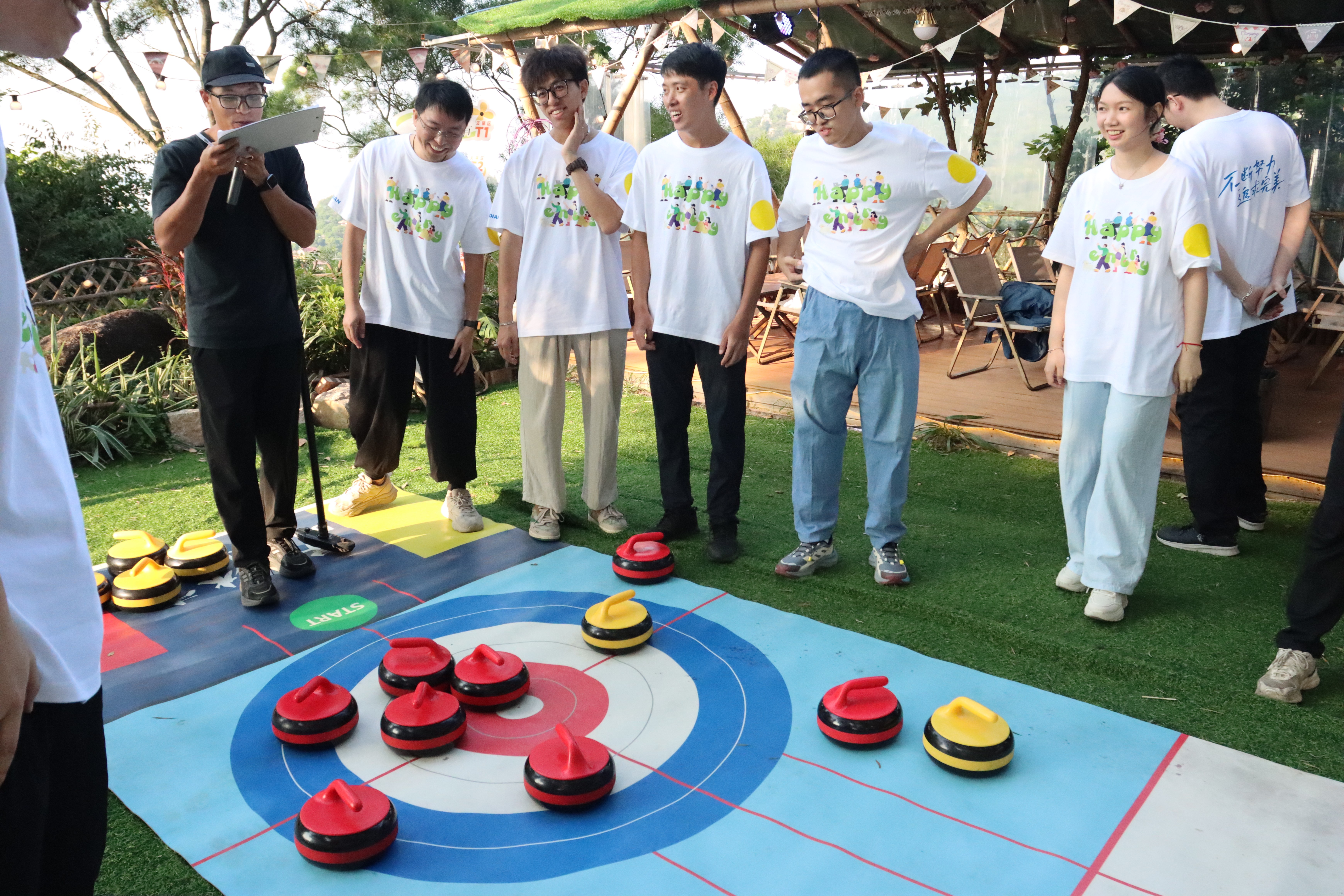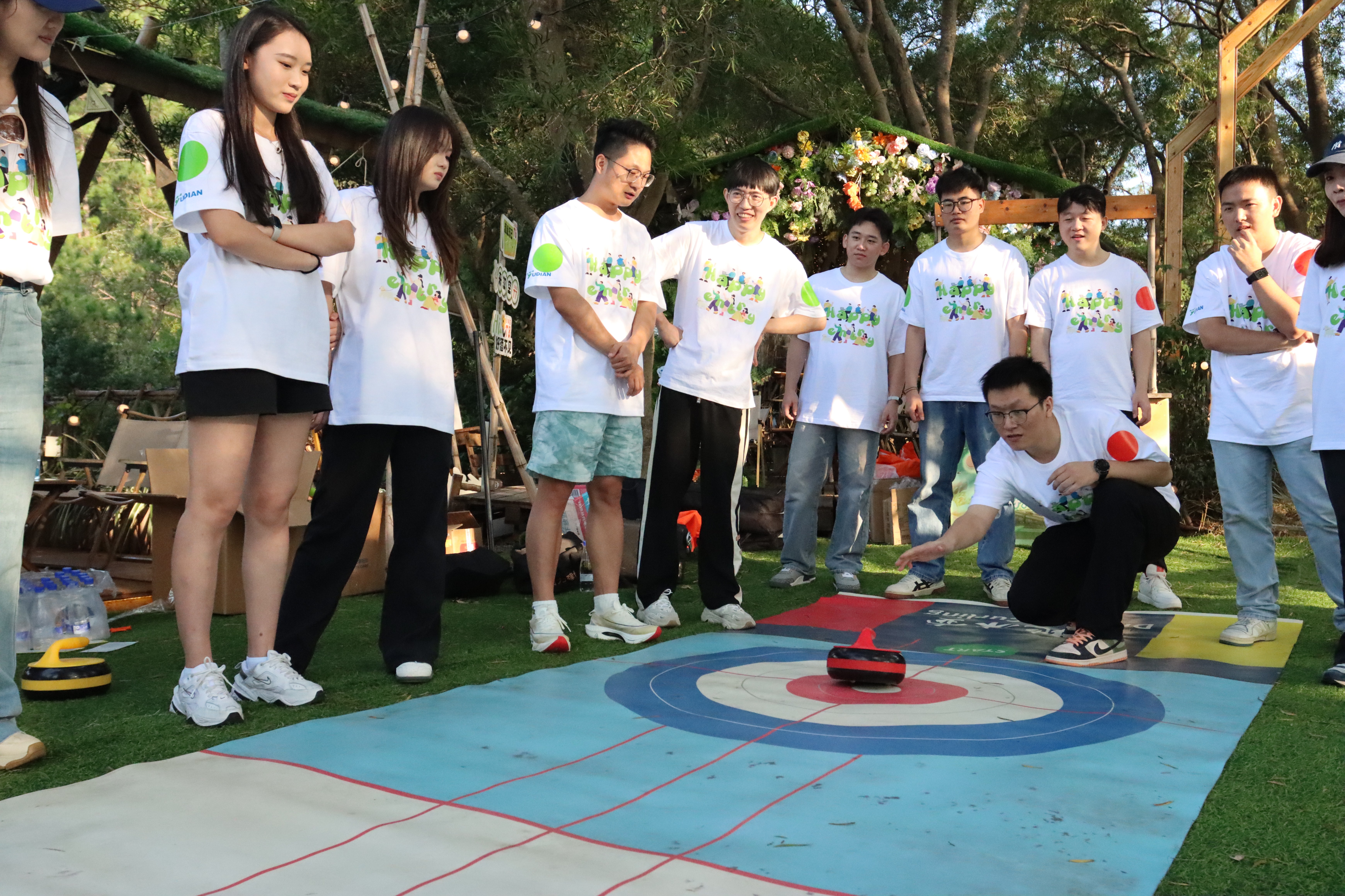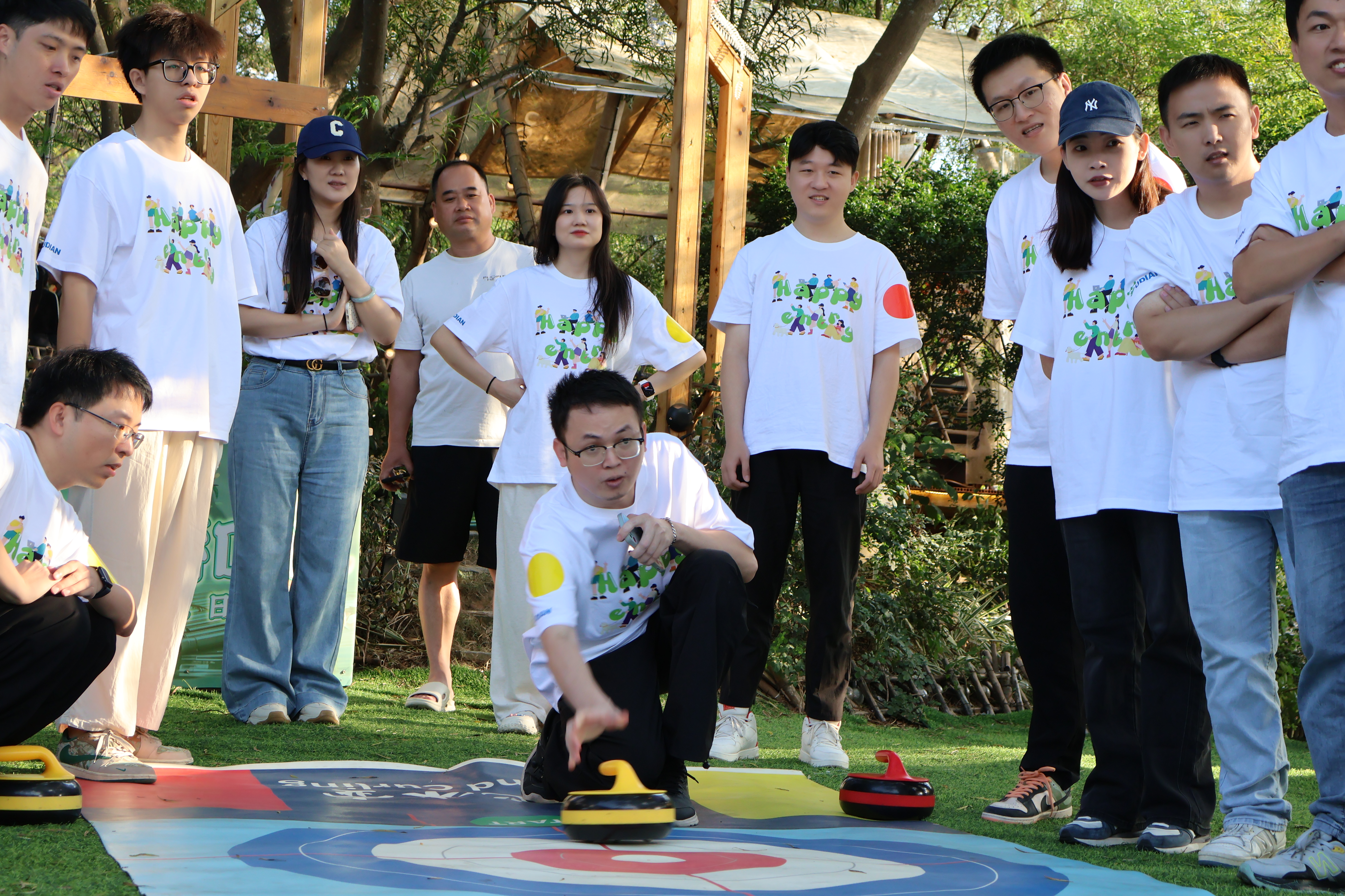 作为活动的核心挑战项目,旱地冰壶备受瞩目。在教练的指导下,新同事们化身“战略家”,从生疏到熟练,每一次精准的投掷、每一次成功的防守,都凝聚着团队的智慧与默契。赛场上的呐喊与欢呼,是集体荣誉感最直接的体现。