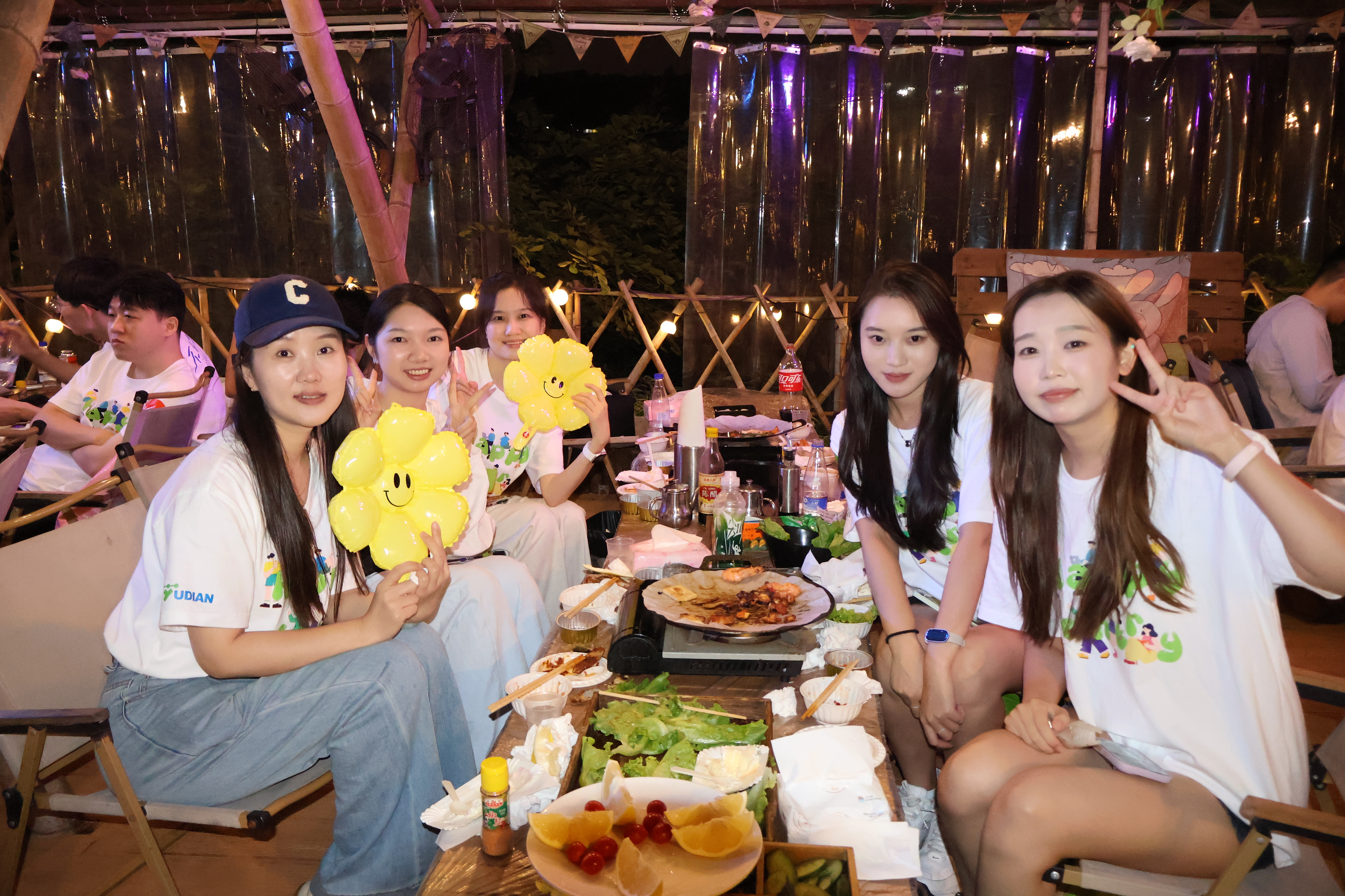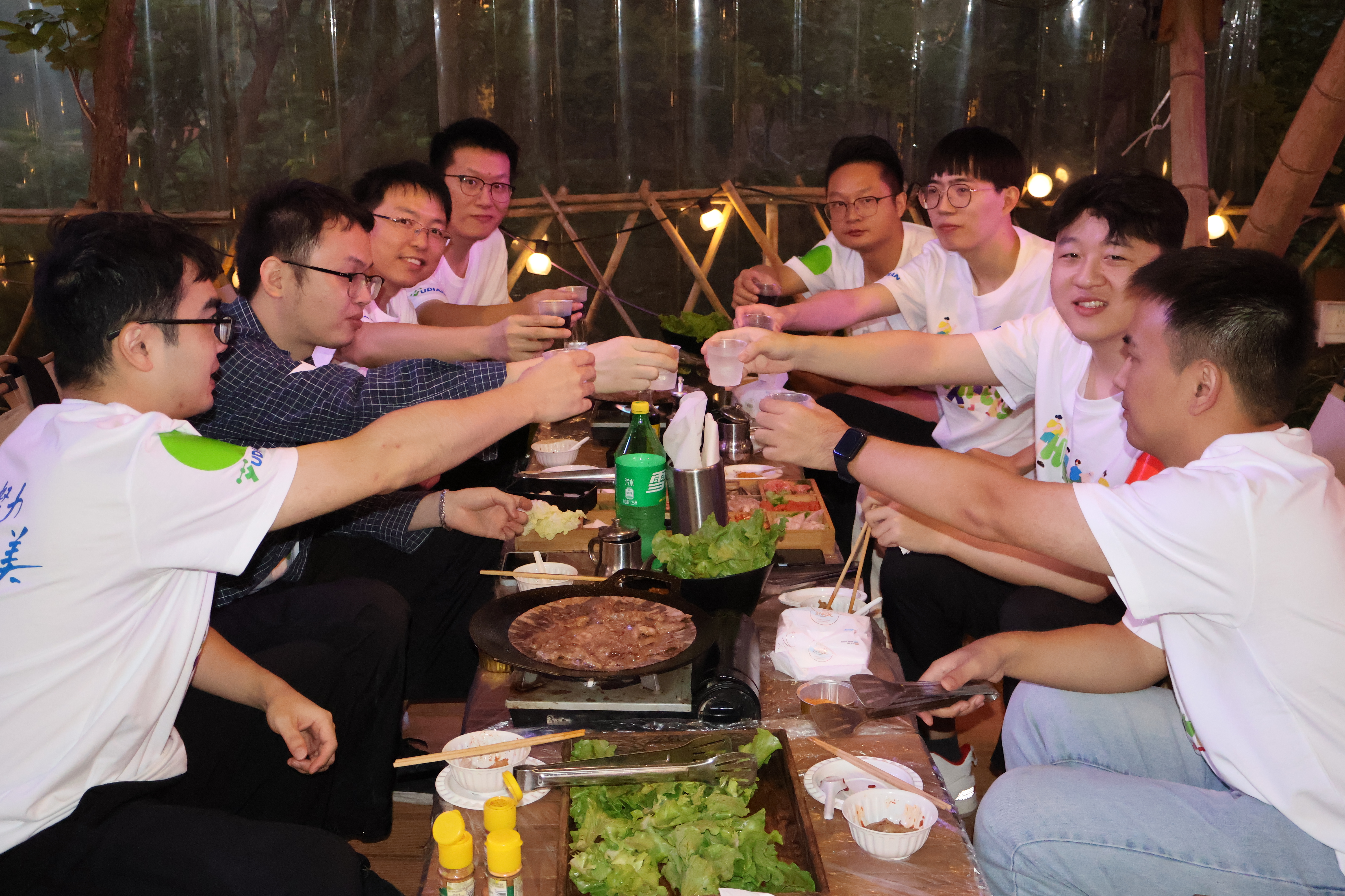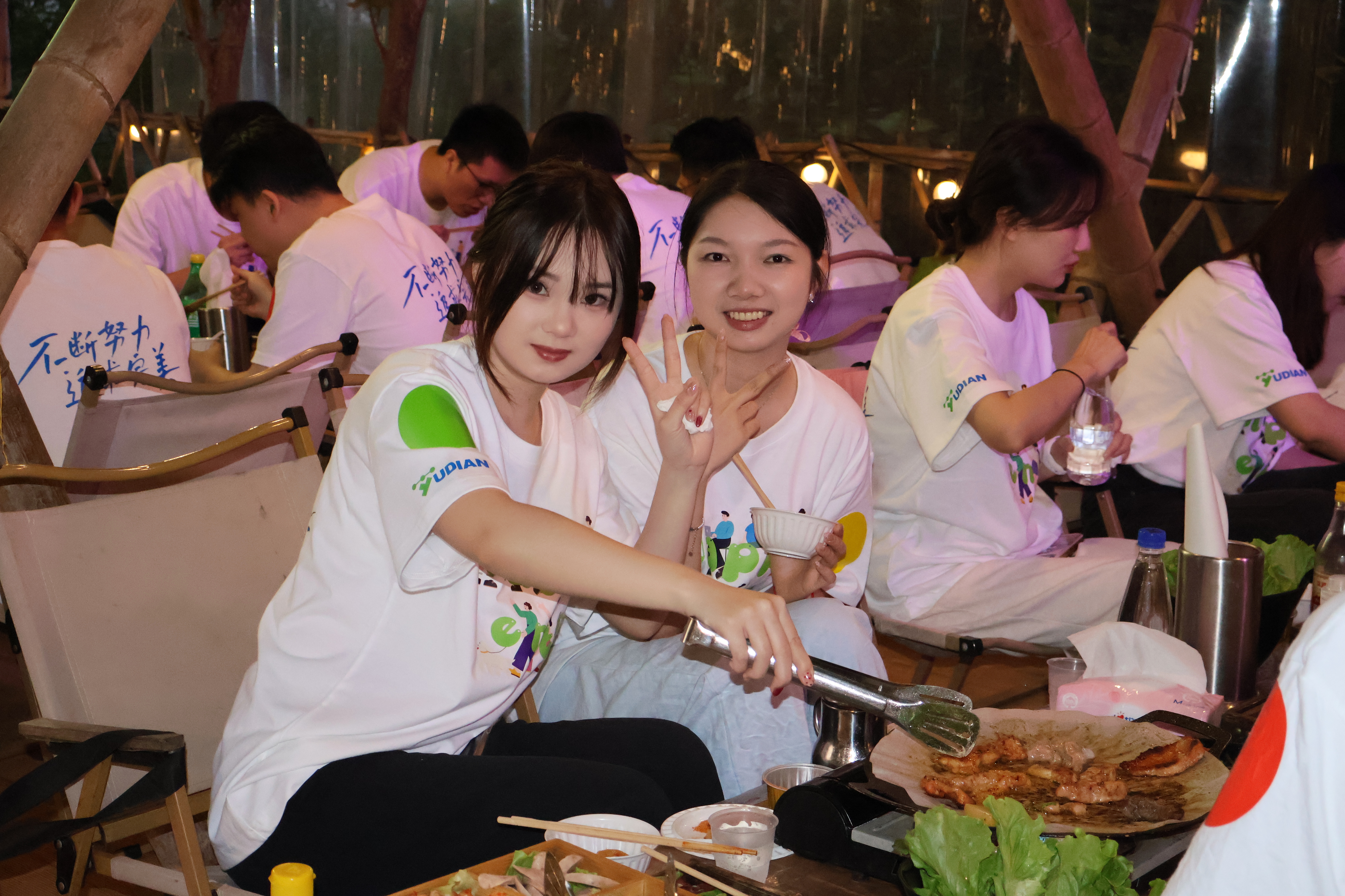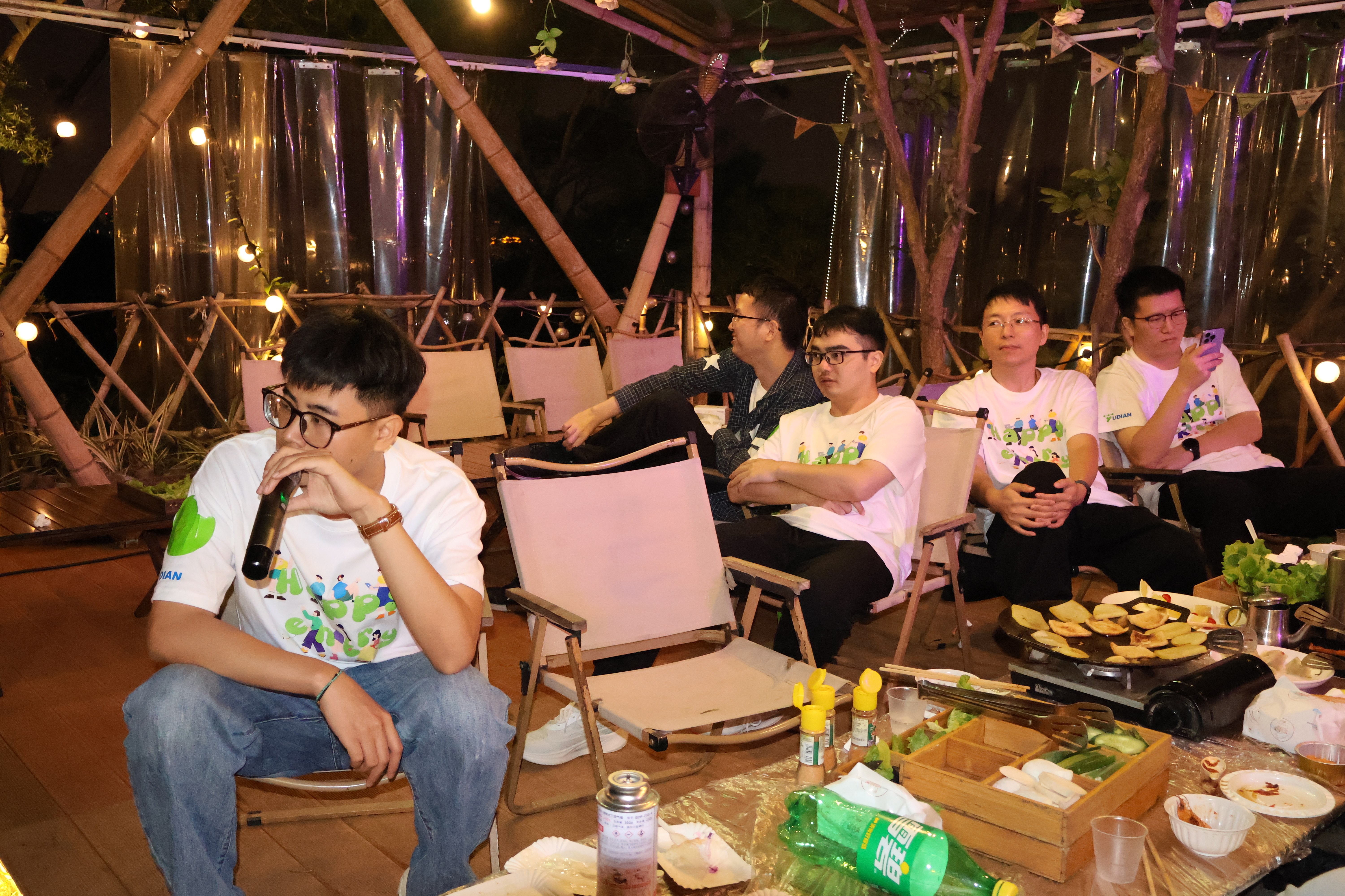 当夜幕降临,星光点点,最令人期待的露营烧烤晚会正式开始。大家自己动手,分工协作,炊烟袅袅中弥漫着食物的香气与欢声笑语。新同事们举杯畅饮,分享着入职以来的心得与感悟,也对在宇电的未来充满了无限的憧憬。